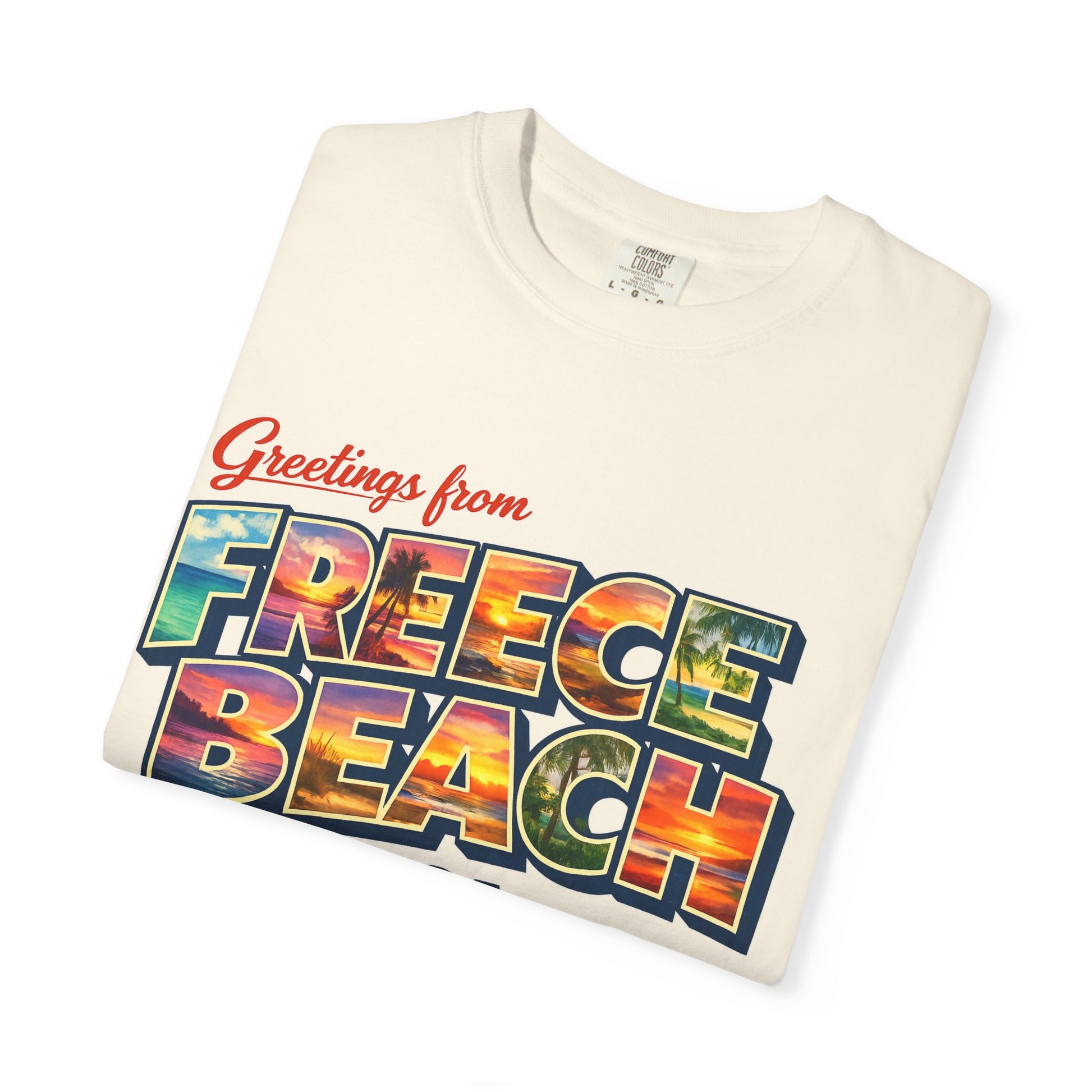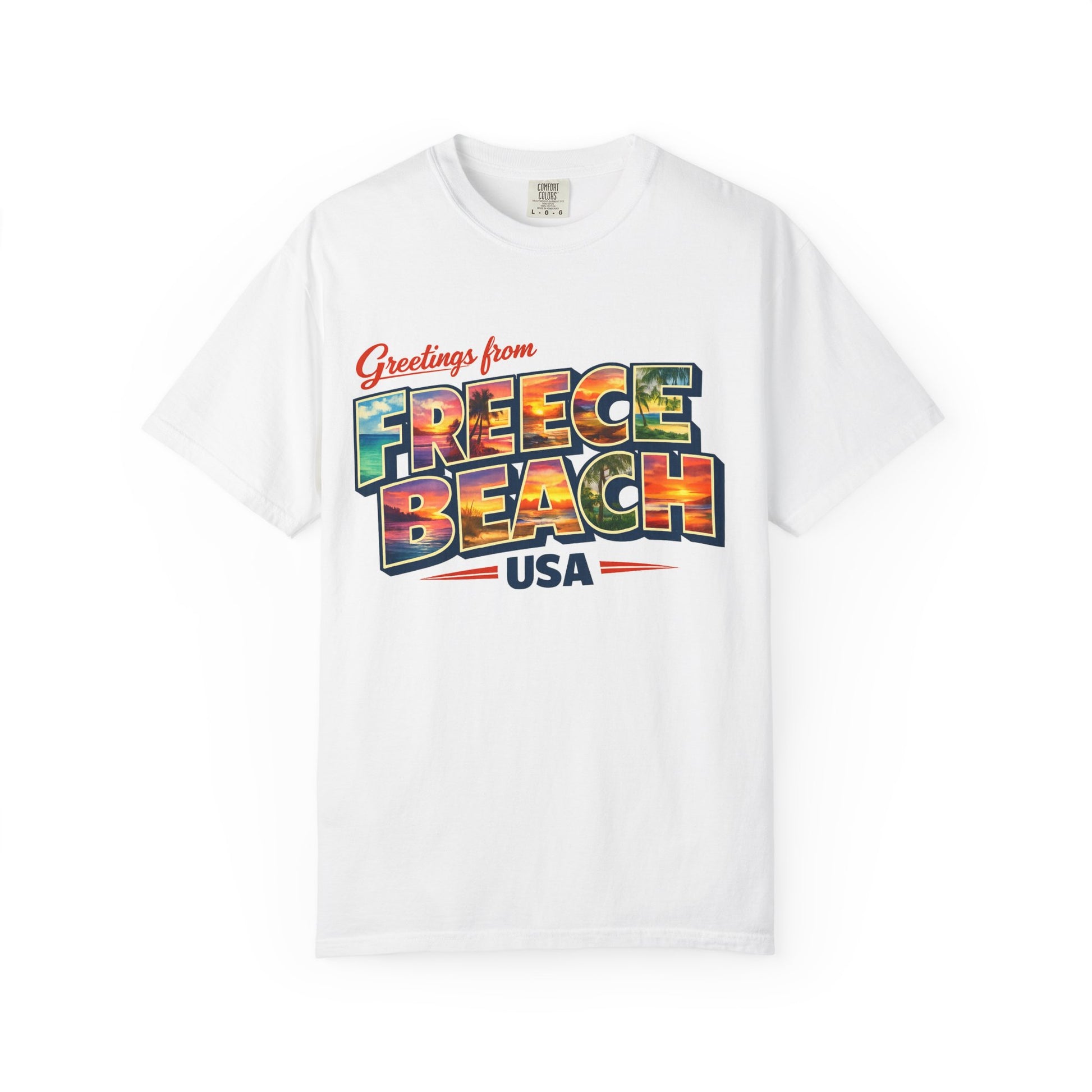 Freece Beach Graphic T-Shirt - Greetings Postcard