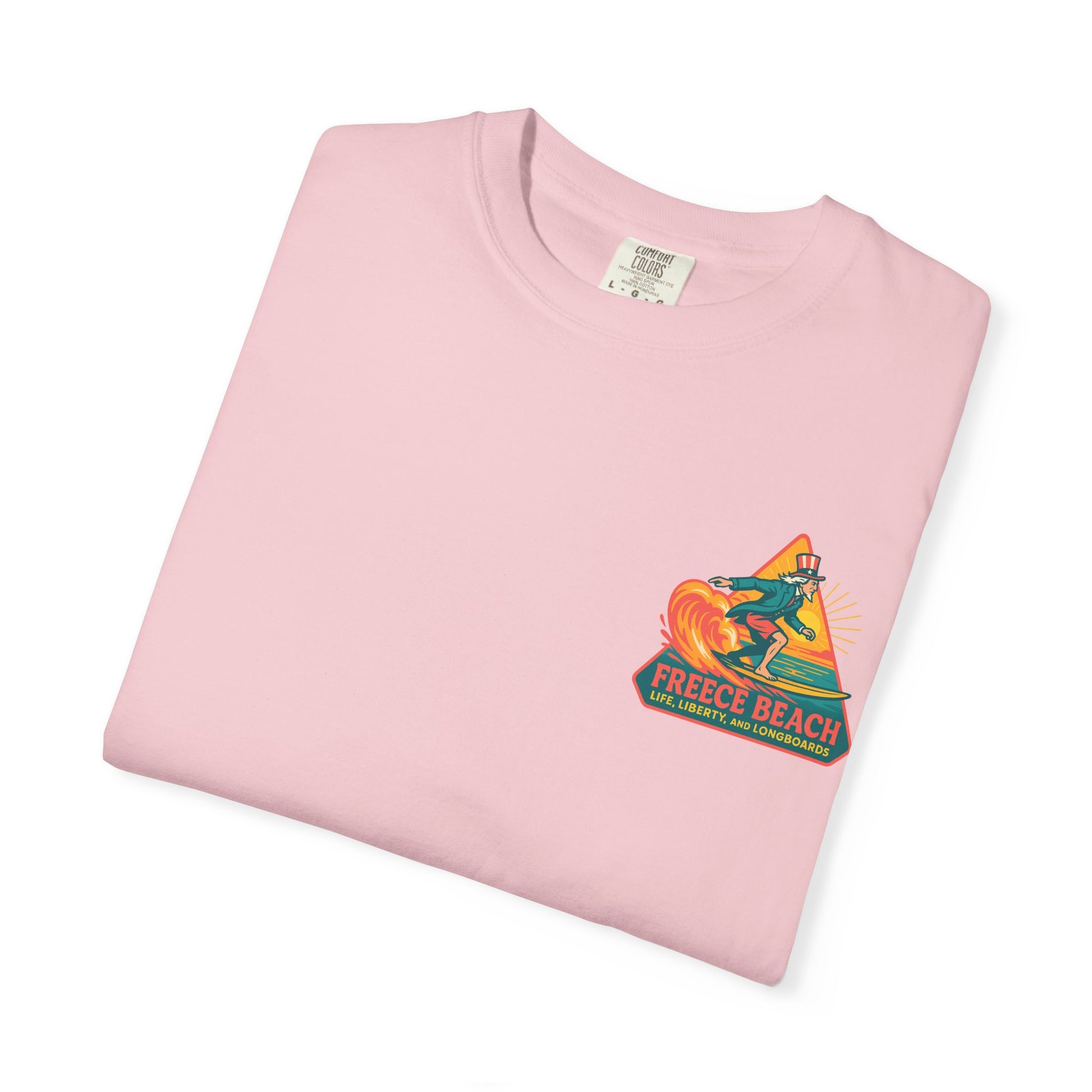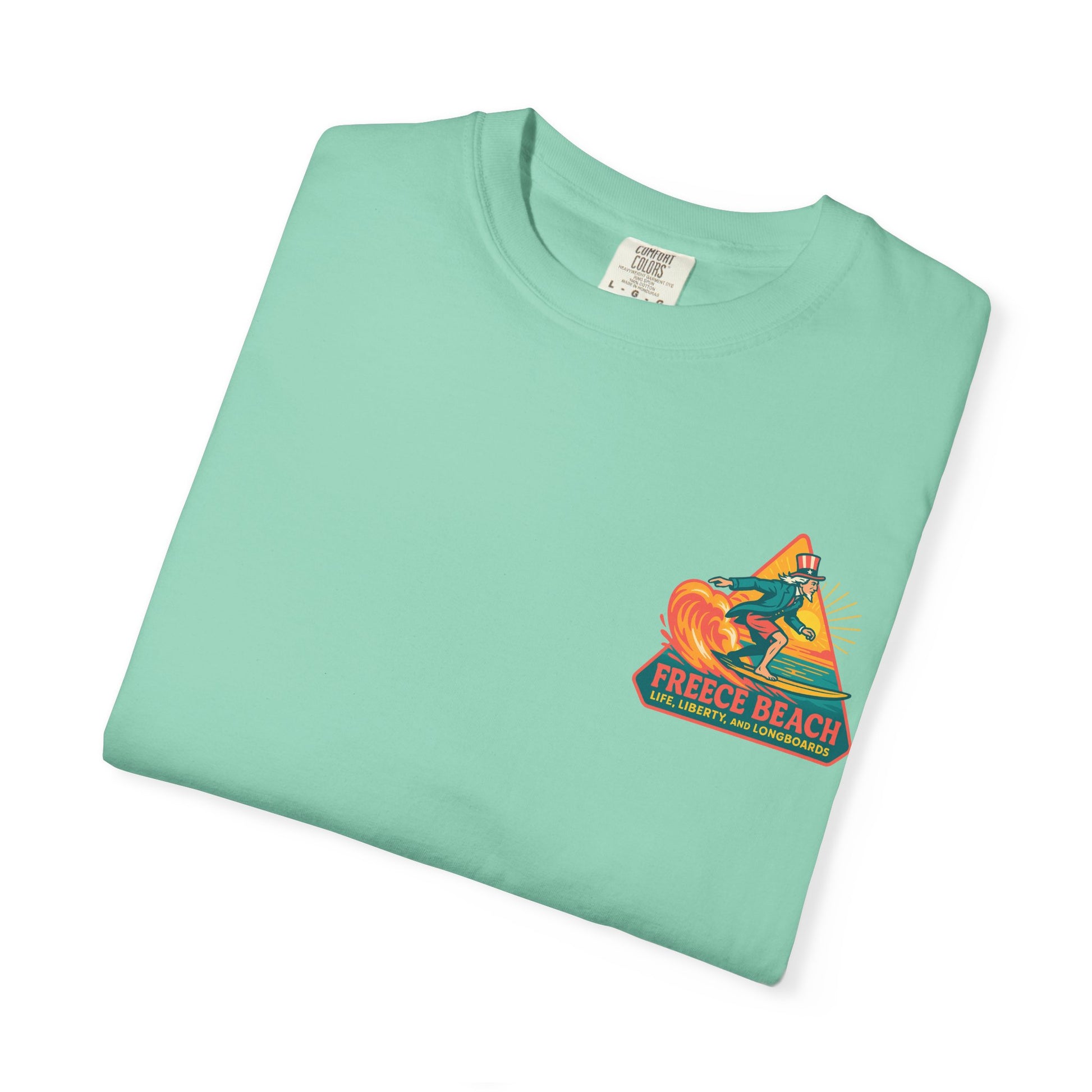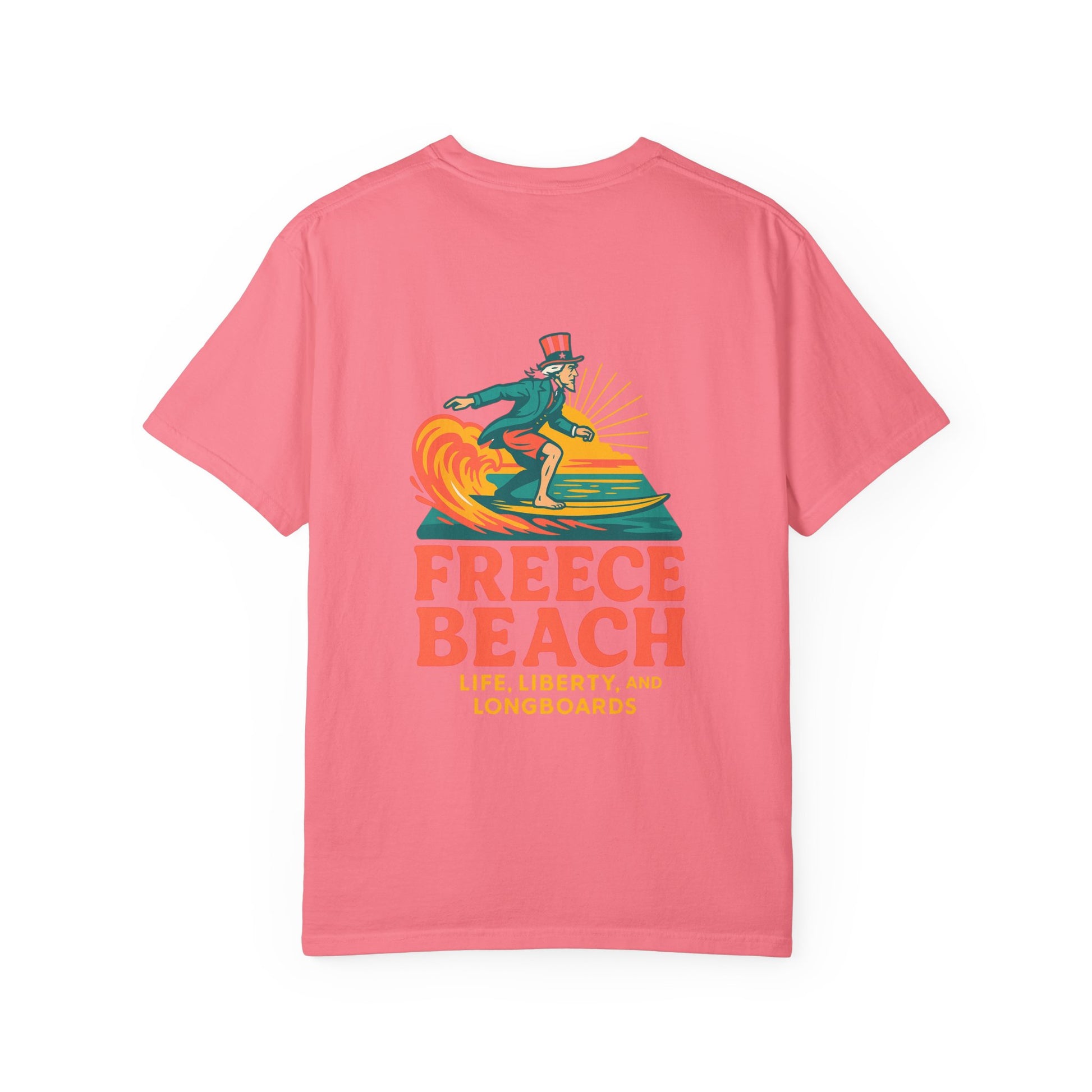 Freece Beach Graphic T-Shirt - Life, Liberty and Longboards Neon