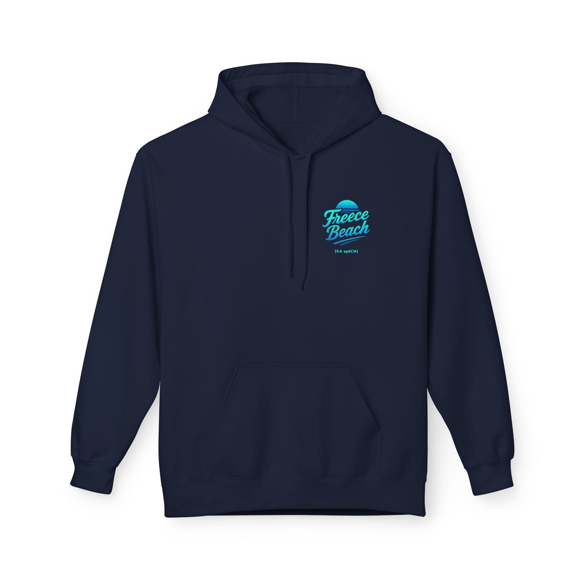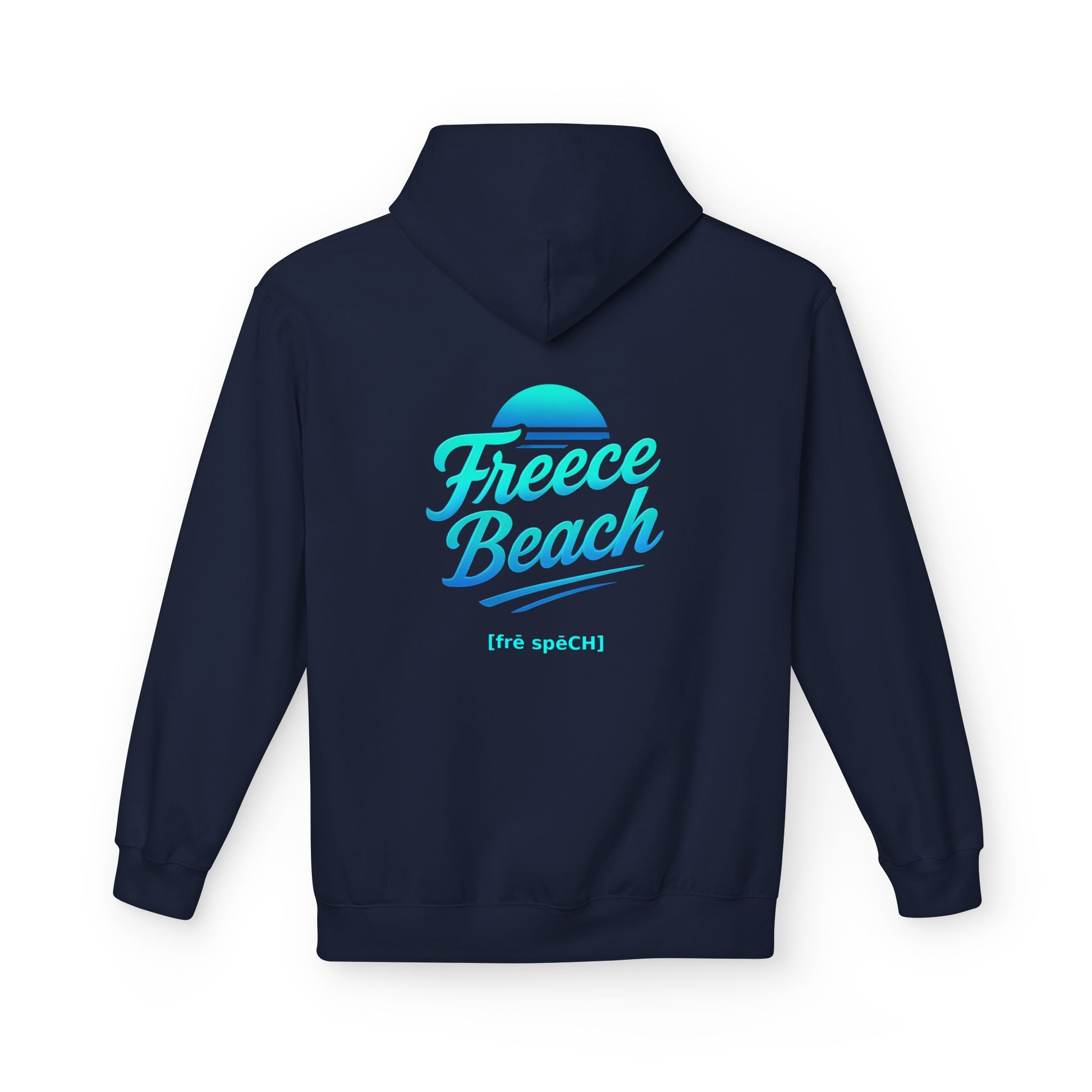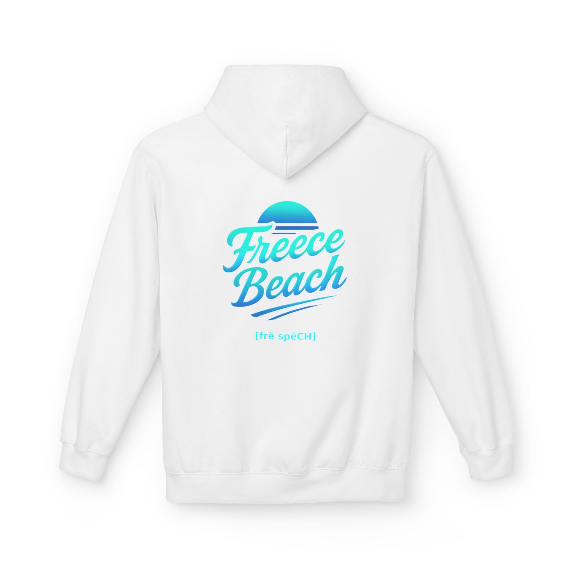 The Cool Neon Freece Beach Hoodie features the official cursive logo glowing in icy blue and aqua tones, evoking moonlit surf and late-night boardwalk vibes. Clean, modern, and effortlessly bold—this hoodie brings a chilled neon edge to classic beach style.