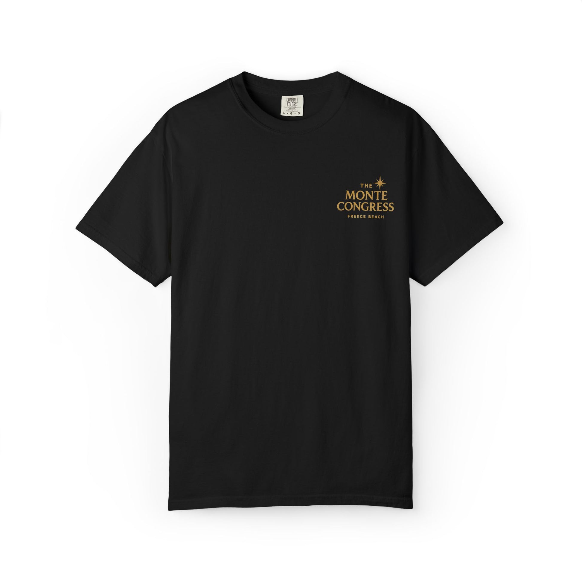 This Freece Beach tee brings The Monte Congress to life as a Capitol Hill casino — where the dome is the dealer, power is the buy-in, and the dress code is deceptively classy. The front chest crest serves as your VIP badge, while the full back design drops the neon-marquee truth: No term limits. No table limits. Just bold satire with high-roller energy.